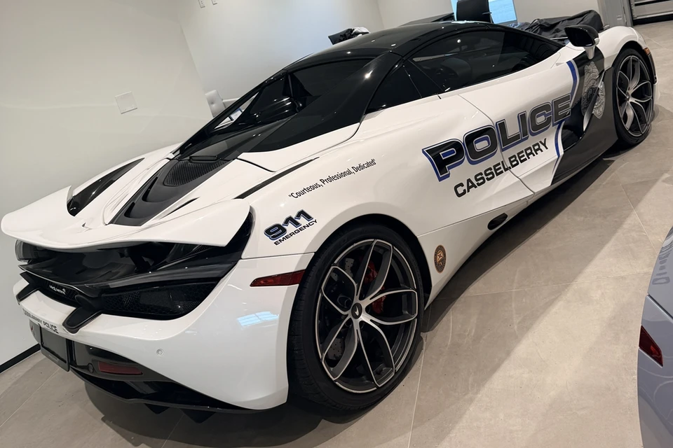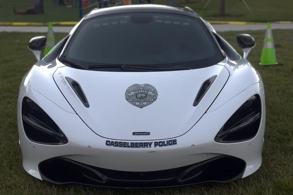 Gần đây, tại bang Florida (Mỹ), chiếc McLaren 720S bất ngờ xuất hiện trong bộ tem “Police Casselberry” với màu trắng chủ đạo phối xanh – đen, logo “Police Casselberry” rõ rệt và hệ thống đèn ưu tiên phía sau kính chắn gió. Điều này khiến nhiều người dân tò mò vì tưởng đây là xe tuần tra thực sự.
